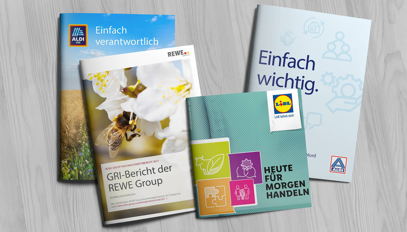 Nachhaltigkeitsberichte von Aldi Nord, Süd, Lidl & Rewe