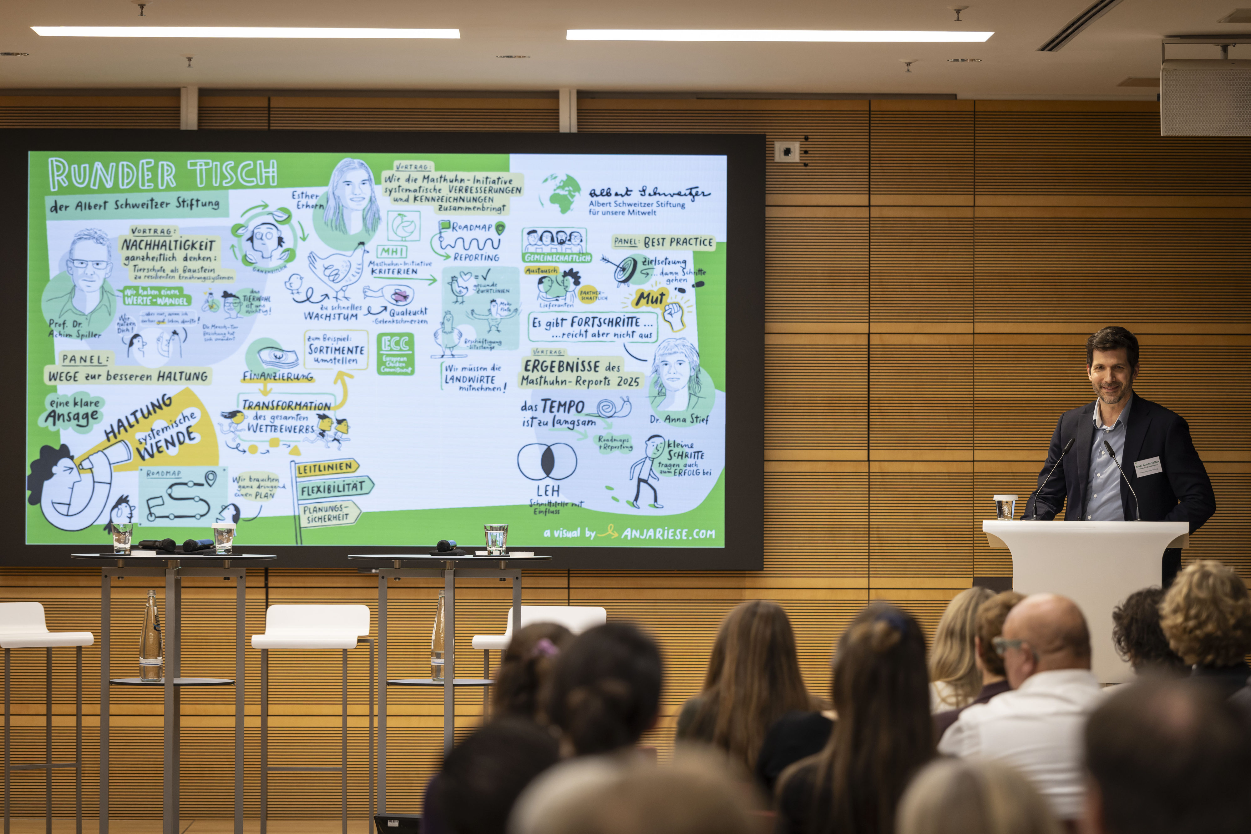Während der Runde Tisch in den vergangenen Jahren primär dem Austausch über die Masthuhn-Initiative diente, rückte 2025 das große Ganze in den Fokus: bessere Haltungssysteme für alle sogenannten Nutztiere in Deutschland. Moderatorin Dr. Dorothea Morgenweg führte durch den Nachmittag.